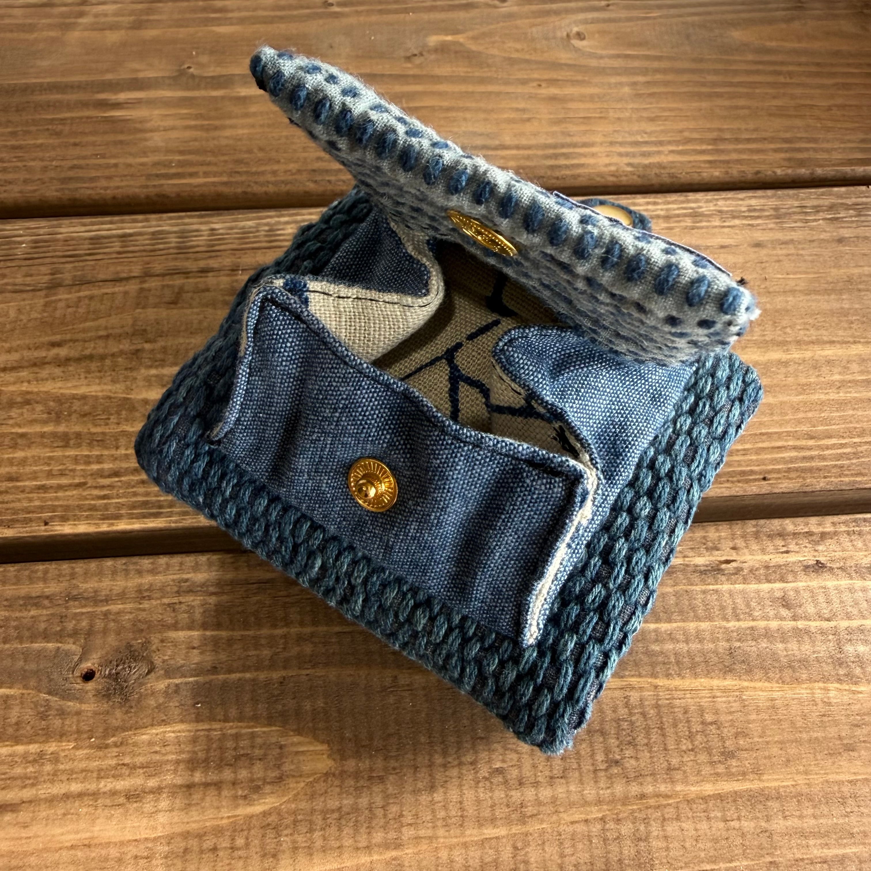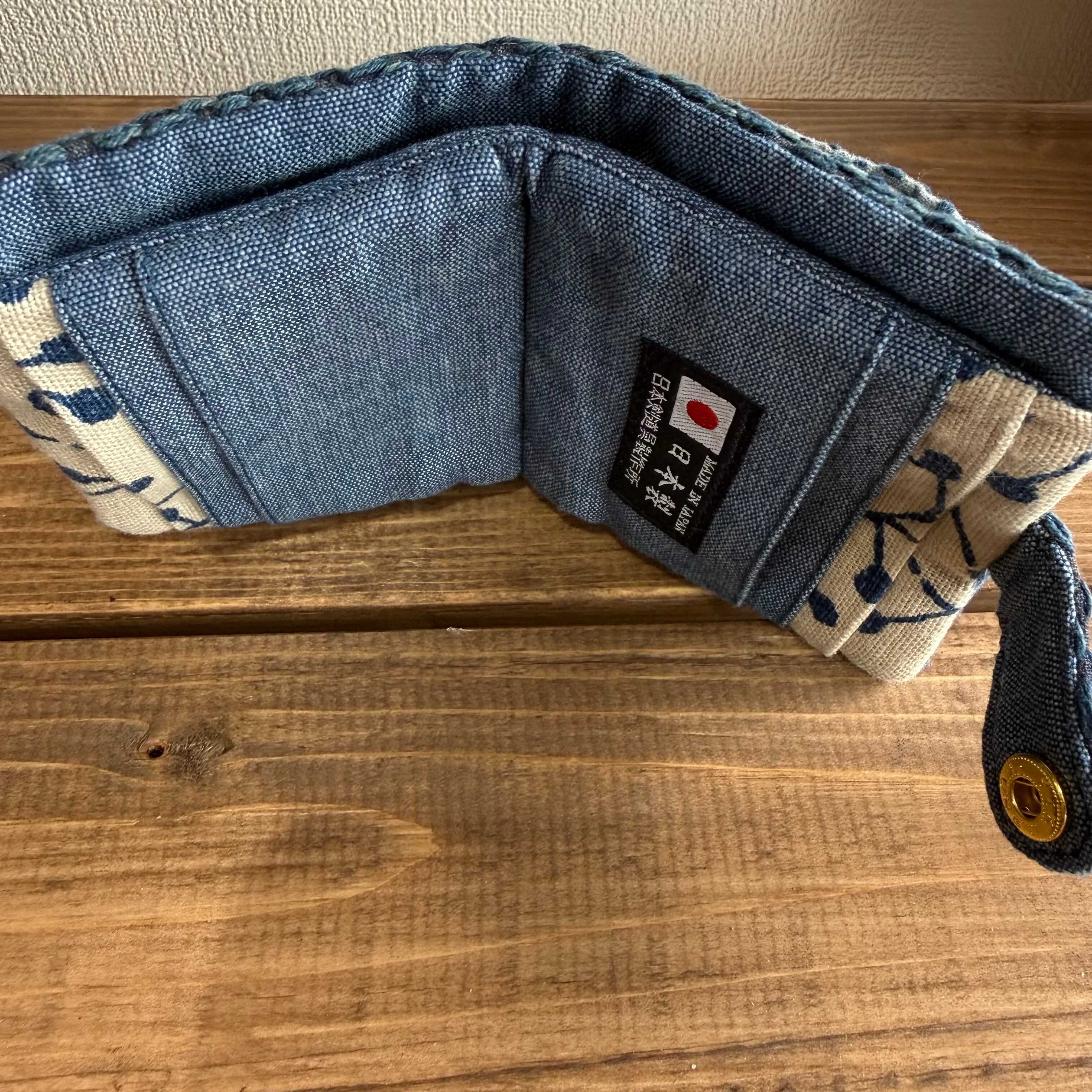 ヴィンテージ剣道着を使用して作った、スクエアコンパクト財布です。